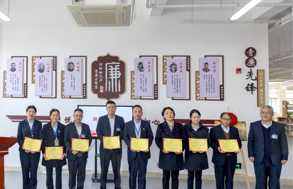 为深入贯彻落实党的二十届四中全会精神,进一步加强新时代廉洁文化建设,打造校园廉洁教育阵地,11月4日下午,我院在图书馆二楼举行廉洁文化基地“青廉文化书苑”揭牌启用仪式。我院院长刘喜宾、党委书记朱国军共同为廉洁教育基地揭牌。全体党委委员、党总支书记、重点敏感岗位干部、师德标兵家属、特邀教师监督员代表、党风廉洁建设学生信息员代表,纪监室和图信中心工作人员等近50余人参加,活动由纪委书记张松主持。