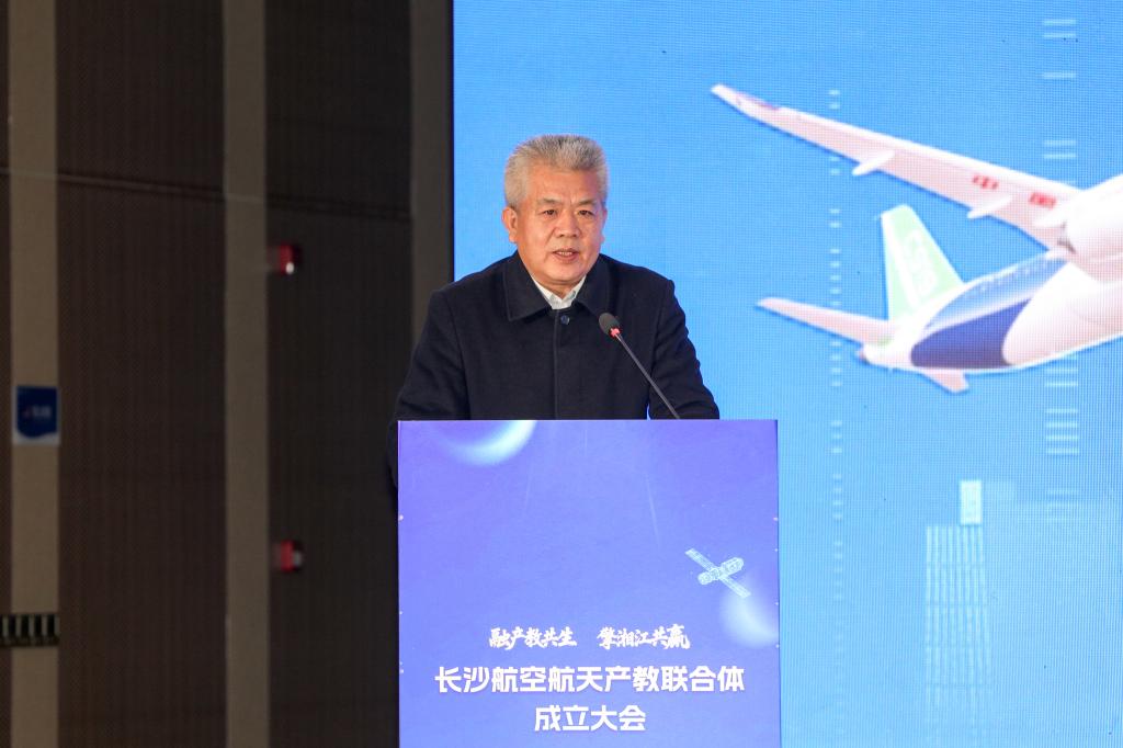 黄婧在发言中指出,近年来,长沙市锚定“三高四新”的战略目标,推进国家重要先进制造业高地建设,聚焦优势产业和未来赛道,重点打造包括航空航天在内的17条产业链,湘江新区作为我国中部地区首个国家级新区,是我省建设国家重要先进制造业高地的承载地。希望联合体成员单位聚焦强链补链,强化产业链上下游协作,提升航空航天产业协同竞争力;聚焦创新驱动,积极推动“揭榜挂帅”“校企共研”等模式,构建科技创新成果转化快车道;聚焦产教融合,推广落实“现代学徒制”和“现场工程师”等培养模式,打造技术技能人才集聚强磁场,构建“政府搭台、园区承载、企业出题、院校答题、人才受益”的产业发展新生态。