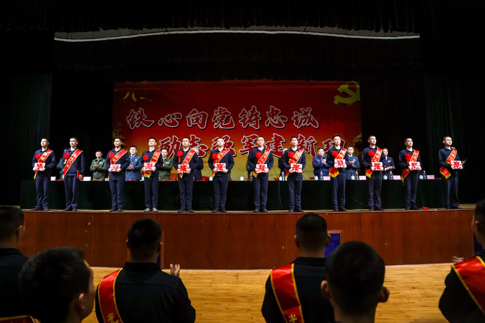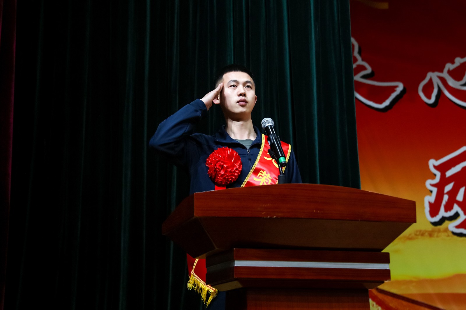 “学府磨剑铸锋芒,青衿志士赴戎行。”入伍定向培养军士代表刘杰豪在发言中深情回顾了在校成长的点点滴滴,由衷表达了对母校的无限感恩与深深眷恋。他坚定地说:“将以青春为帆,以信念为锚,以忠诚为甲,以能力为刃,在强军征程中淬火成钢,以优异成绩和闪亮军功章,回报母校的培育之恩与殷殷期望。”